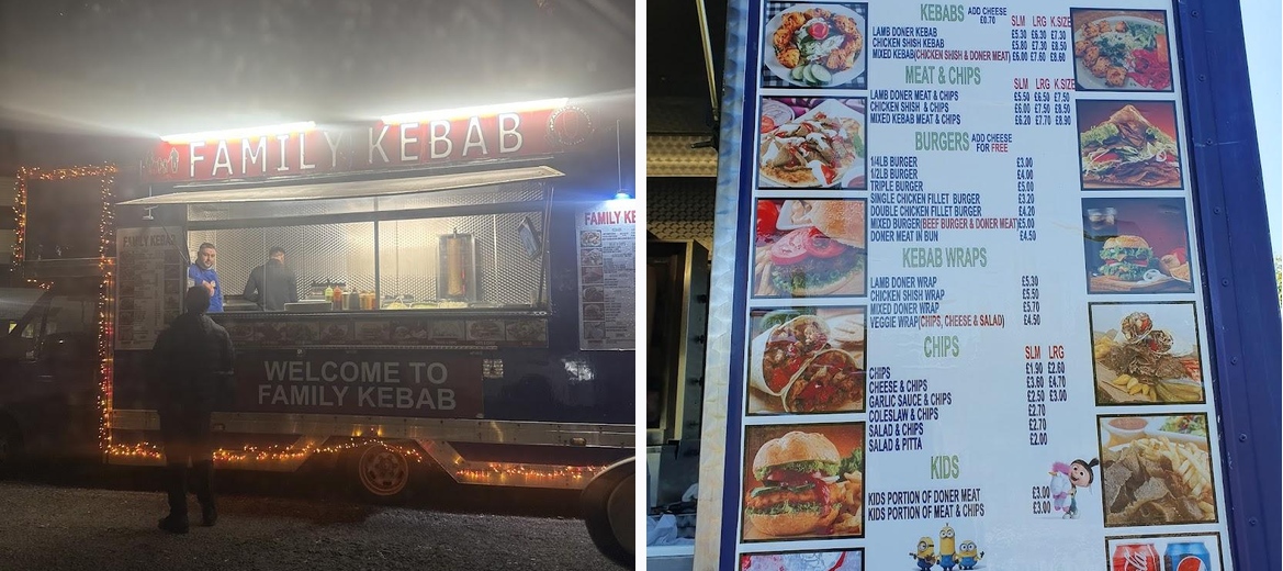 Family Kebab Van specializes in comfort food, particularly kebabs, burgers, and quick bites.